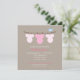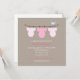 Cute baby clothes hanging on a clothesline on this chic invitation.