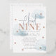 This elegant and modern "we're on cloud nine/9" boy baby shower by mail foil invitation features a white background with fluffy blue clouds in watercolor. The reverse side features a white background with geometric patterns in light blue. Personalise for your needs. You can find more matching products at my store.