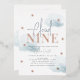 This elegant and modern "we're on cloud nine/9" boy baby shower foil invitation features a white background with fluffy blue clouds in watercolor. Personalise for your needs. You can find more matching products at my store.