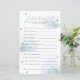 This elegant cloud 9/cloud nine "Who Knows Mummy Best?" baby shower game card features a white background with fluffy blue clouds in watercolor. Personalise it for your needs. You can find matching products at my store.