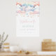 Cloud baby shower welcome sign in rainbow colours with stars.