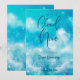 Dreamy baby shower invitation card featuring watercolor art of turquoise blue sky with clouds and stars. The text says "We are on cloud nine." Perfect for a boy's baby shower.