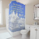 MAKE YOUR BATHROOM A PLACE OF CALM AND RELAXATION. THIS SHOWER CURTAIN FEATURING A SIMPLE DESIGN, THE BLUE SKY AND WHITE FLUFFY CLOUDS, WILL HELP ACHIEVE THAT AMBIANCE. (A whimsical quote is added but is customisable so it can be deleted and either left with no quote or add text of your own)