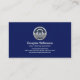 Overleaf, in a blue cover, the silver logo is at the top followed by your prestigious name, job title and the contact details.