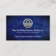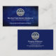 Card features a cloudy blue water grunge cover with a faux silver "water wave life buoy" logo at the top. This is followed by the business name and a slogan to publicise your services. Change the caption remarks to the slogan to suit your own needs. Near the base is the contact details.