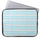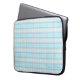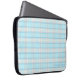 Laptop sleeve in an aqua & grey pattern.