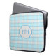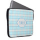 Monogrammed Laptop Sleeve in an aqua & grey plaid pattern. Use the Personalise option to add your initials. Use the Customise option if you need to recenter the text block or want to change the font, font size or colour.