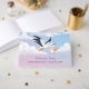 Stork carrying a baby in a bundle. Customizable text.