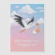 A stork is carrying a baby in a bundle. Customizable text.