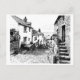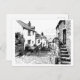 A hand-drawn black and white sketch of Clovelly, Devon, a historic fishing village famous for its steep cobbled street, stone cottages, and picturesque harbour. This vintage-style line illustration captures the charm of coastal England and its timeless heritage. Perfect for lovers of travel, maritime history, and traditional village scenes.