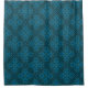 This shower curtain features a captivating and unique design. The pattern uses several shades of green and teal, which, when repeated, form a shape that resembles a pointed-petal clover. This creates a visually interesting and dynamic look.