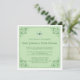 Stylish St Patricks day wedding invitation featuring a clover leaf inside a horseshoe and a border with ornate corners on a pale green background. Darker green invitation text which is fully customisable. Elegant and modern design for St Paddys day themed weddings. Other coordinating products are also available. Should you require a coordinating product that is not available or have custom requests please use the store contact link above.