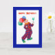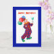 A bright and cheerful Age-specific Birthday Card for a 4 year old, with a clown carrying balloons, from a handpainted illustration by Judy Adamson. Please feel free to change the inside text to your liking.