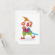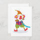 This design is a fun one of a colourful clown blowing up balloons. The clown is dressed very brightly and is blowing up a blue balloon. This clown blowing up balloons design looks great on this Invitations