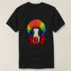 I give wanted to give this a 4 instead of a 5 because these Basic DARK T0shirts run unexpectedly SLIM or Narrow. Which is great if you do not have a potbelly, but I have a paunch. It isn't the shirt's fault that I've got a beer belly. The design and shirt itself is a quality cotton shirt. The color is more of a deep purple, but still a very pretty color. The Basic DARK T-shirts run a bit SLIMMER than the Basic Ts. The neck is a fraction narrower (or seems to be narrower) also. I'm a paunchy middle-aged woman and my neck is 12 inches (31cm) thick and the neckline fell about the same as in the photo of the man, and I had the desire to tug it a bit. So if you're a thick necked man or like loose shirts, be aware these are slimmer shirts. Once I get rid of my lockdown paunch it'll look great. The shirt washed well in cold water with no apparent bleeding. We don't have a dryer, so it hung dry. Did not shrink. Love the colors and the design. The design looks smaller on my shirt than it does on the model on-line. But still, it looks good on the shirt. The printing looks as it does on the model, just the size seems fractionally smaller. Washed garment in cold water, hung dry and design appeared unaffected.