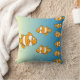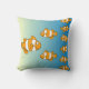 Cute kid's throw pillows that feature a pattern of orange clown fish with a blue fading into white background with the back of the pillow having a blue colour that can be changed by you. Kids who love sea animals will love these adorable pillows in their bedroom.