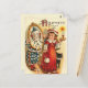 Vintage Halloween holiday postcard image featuring a clown bursting out of a mirror at a young girl with candle. She is dropping a clock in the process of the trick.