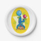A clown standing on its head with some balloons around it. This design looks really effective on this Paper Plates