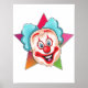 A cute and funny (or creepy and scary!) cartoon painted clown face with a red nose.