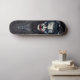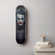 The skateboard has a specific design: a clown with a chilling look. This means that the skateboard is decorated in a way that resembles the scary face of a clown. Clown includes elements such as creeping, chilling eyes, arched eyebrows, and a facial expression generally associated with fear. This particular design gives the skateboard a distinctive touch and is likely to provoke intense emotional reactions due to the scary nature of the topic.