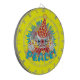 No need to be afraid of this clown! Clown skull is designed in bright colours and has a message of "PEACE".