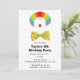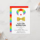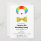Celebrate in style with these bright rainbow-coloured clown themed birthday party invitations. They feature an illustration of a rainbow clown wig, red clown nose and yellow polka dot bow tie. These party supplies are ready to be personalised with your own text.