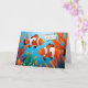 Pair of clownfish in seaweed and ocean coral with speech bubble for 75th birthday humour.