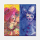 Colourful ,whimsical ,vibrant,artistic clown portraits ,watercolor paintings in,purple,fuchsia,pink,red,yellow,blue,green colours inspired from Carnival of Venice.