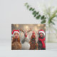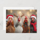 Send smiles this holiday season with this hilarious and unique postcard featuring a rowdy flock of chickens all dressed up for Christmas! One wears a Santa hat, another sports reindeer antlers, and a third is tangled up in colourful Christmas lights. This humourous, photo-realistic design is perfect for friends and family who love farm life, chickens, or just appreciate a funny, unexpected twist on traditional holiday greetings.