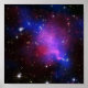 Explanation: Huge clusters of galaxies are surely colliding in Abell 520 but astrophysicists aren't sure why the dark matter is becoming separated from the normal matter. The dark matter in the above multi-wavelength image is shown in false blue, determined by carefully detailing how the cluster distorts light emitted by more distant galaxies. Very hot gas, a form of normal matter, is shown in false red, determined by the X-rays detected by the Earth-orbiting Chandra X-ray Observatory. Individual galaxies dominated by normal matter appear yellowish or white. Conventional wisdom holds that dark matter and normal matter are attracted the same gravitationally, and so should be distributed the same in Abell 520. Inspection of the above image, however, shows a surprising a lack of a concentration of visible galaxies along the dark matter. One hypothetical answer is that the discrepancy is caused by the large galaxies undergoing some sort of conventional gravitational slingshots. A more controversial hypothesis holds that the dark matter is colliding with itself in some non-gravitational way that has never been seen before. Further simulations and study of this cluster may resolve this scientific conundrum. Credit: X-ray: NASA / CXC/ U. Victoria/ A. Mahdavi et al. Optical/Lensing: CFHT/ U. Victoria/ A. Mahdavi et al.