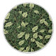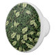 A foliage print with a light almost olive green or sage leaves interwoven into darker greens. A shade of hunter green or a dark forest green creates the large majority of the leaves. These on a background of black.