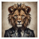 A whimsical Lion named Clyde wearing a tie and jacket.