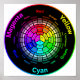 This CMY (Cyan, Magenta, Yellow) color wheel has names, mixes (shades/tones/tints), temperatures (warm/cold), and orders (primary/secondary).