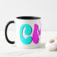Stylish CMYK Funky Retro Mug with CUSTOMIZABLE MONOGRAM for graphic designers, printers and art students. Design shows CMYK in funky retro typography in cyan, magenta, yellow and black (key) wrapping around the mug. On the K there is a CUSTOMIZABLE MONOGRAM which you can replace with your initial. A little bit different from your average CMYK coffee mug!