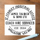 Coach hire rubber stamp. Public transport or coach hire business rubber stamp. Coach Hire Services Rubber Stamp. Company Name, Business type, plus Two Lines of Address in a circular effect. A business rubber stamp for all kinds of stationery items, envelopes, packages etc. Stamp your return address easily and stylishly.