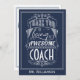 The perfect way to show your appreciation to a coach This stylish design shows the message 'Thank you for being an awesome coach". In dark blue and white, this stylish typography makes a modern and eye-catching flat card.
