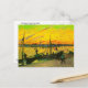 Vintage retro colourful cool beautiful artistic elegant unique creative original Post Impressionism landscape and seascape sunset fine art painting with boats and figures.