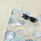 Personalize this coastal beach towel, featuring a pattern of hand drawn seashells in shades of blue and brown, with an aqua and sand colored abstract background. If you would like this design on other products, please contact me through Zazzle Chat.