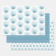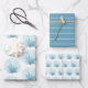 These beautiful gift wrap sheets feature watercolor coastal aqua scallop seashells on a solid white background on two of the sheets with a solid matching aqua blue and white thin stripe on the third.