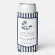 LAST TOAST ON THE COAST | Bachelorette Party Can Cooler. Navy Blue Coastal Scene Illustration with coordinating navy typography, frame and stripe pattern.