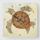 Coastal Beach Ocean Seashore Collage Sea Turtle Square Wall Clock