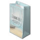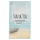 Business thank you gift bag with with a beautiful rustic image. Subtle colours of light blue, sandy brown and gentle white. A beach scene with a boat on the shore with a fishing net hanging off the side. An elegant shabby look.
