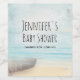 Baby shower or other event wine bottle labels with a beautiful rustic image. Subtle colours of light blue, sandy brown and gentle white. A beach scene with a boat on the shore with a fishing net hanging off the side. An elegant shabby look.