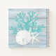 This personalised rustic beach driftwood notebook with sand dollar and starfish and aqua glitter coral branch, is great for taking to the beach for journalling, taking notes, etc.