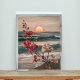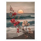 Capture the serenity of a coastal sunset with this stunning floral painting. The vibrant red and white blooms against the backdrop of the golden sky and calming waves create a peaceful and inviting scene. This piece is sure to add a touch of coastal charm to any home.