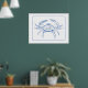 This poster features a classic coastal crab in coastal blue and white.