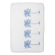 This modern coastal inspired bath mat features cute blue palm palmetto trees on a background of solid white.