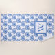 This preppy coastal inspired monogrammed beach towel features seashells in classic blue and white. Personalise the matching blue and white monogram with your choice of initial.
