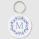 Coastal Blue and White Starfish Wreath Monogram Key Ring