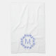 Coastal Blue and White Starfish Wreath Monogram Tea Towel